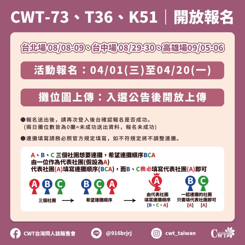 【2026年08、09月CWT-73、T36、K51開放報名公告】